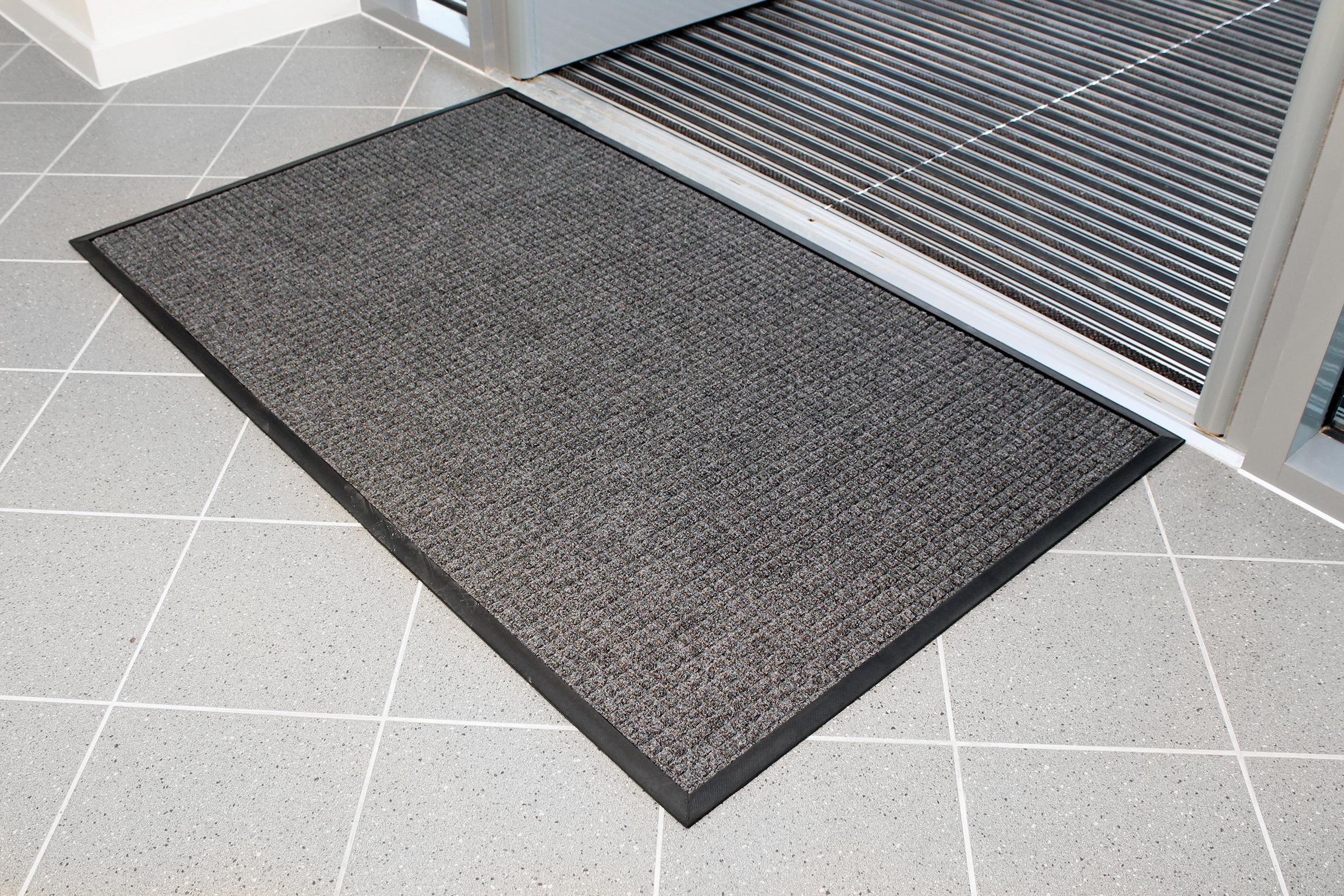 This is Anti-Slip Entrance Mat Carpet Indoor Grey 900mm 600mm 7mm manufactured by RS Pro. The manufacturer part number is 159-6179. Anti-Slip Options - yes. Its mat is made up of pp, rubber material . Applications Information involves door, entrance, walkway. It has a decent grey colour. Additionally, it is for indoor . It is 7mm thick. Furthermore, the product is 0.6m wide. Its accurate length is 0.9m. The surface is carpet type.