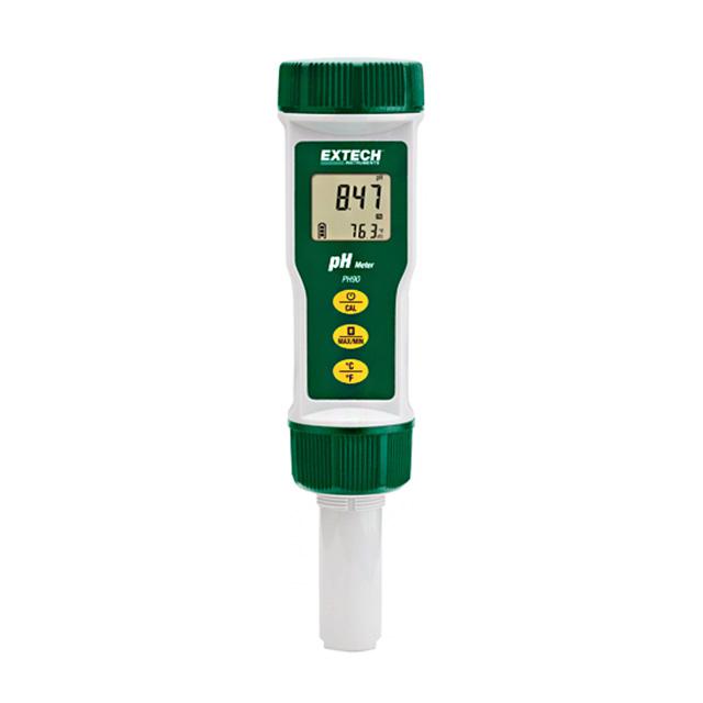 This is manufactured by FLIR Extech. The manufacturer part number is PH90. It is assigned with possible HTSUS value of 0000.00.0000. It is shipped in box package . Its typical moisture sensitivity level is not applicable. The product is also supplied with battery, cap, electrode. It has a long 6 weeks standard lead time. It comes in specialty configuration. It is ideal for measuring acidity, ph.