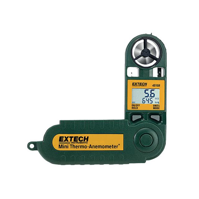 This is manufactured by FLIR Extech. The manufacturer part number is 45158. It is assigned with possible HTSUS value of 9026.80.4000. It is shipped in box package . Its typical moisture sensitivity level is not applicable. The product is also supplied with battery, lanyard. It has a long 6 weeks standard lead time. It comes in anemometer configuration. It is ideal for measuring air flow, humidity, temperature. The product is designated with the ear99 code number.