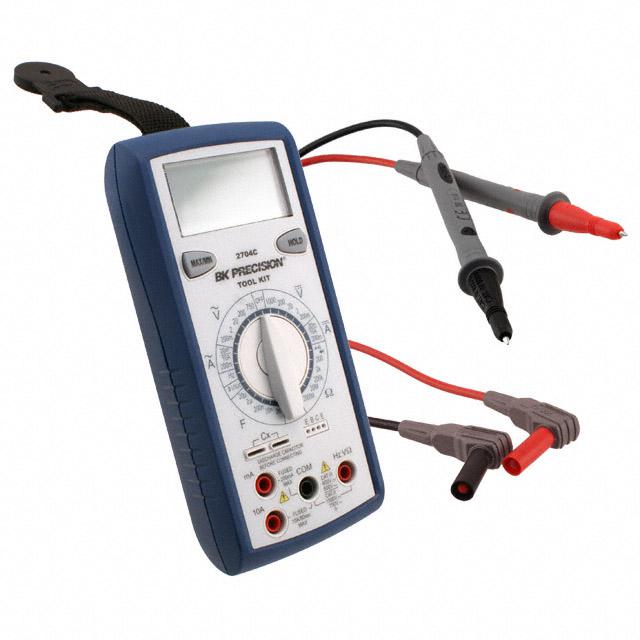 This is manufactured by B&K Precision. The manufacturer part number is 2704C. Additionally, the product is designed with handheld Style. It is assigned with possible HTSUS value of 9030.31.0000. The product is not applicable. It also offers extra functions, such ascontinuity, diode test, logic, transistor gain. It comes in digital (dmm) configuration. Ranging Options - manual. It performs basic function of voltage, current, resistance, capacitance, frequency. In addition, it is reach unaffected. The product is also supplied with battery, hanger, manual, test leads. The product offers average response and is easy to use. The product has a typical of 2000 display count. It is shipped in box package . Its typical moisture sensitivity level is not applicable. It has a long 12 weeks standard lead time. It features a remarkable lcd display. The splendid features of the product include hold, min/max. The product tool kit® 2704, is a highly preferred choice for users. It is supplied with 3.5 display digits. The product is designated with the ear99 code number.