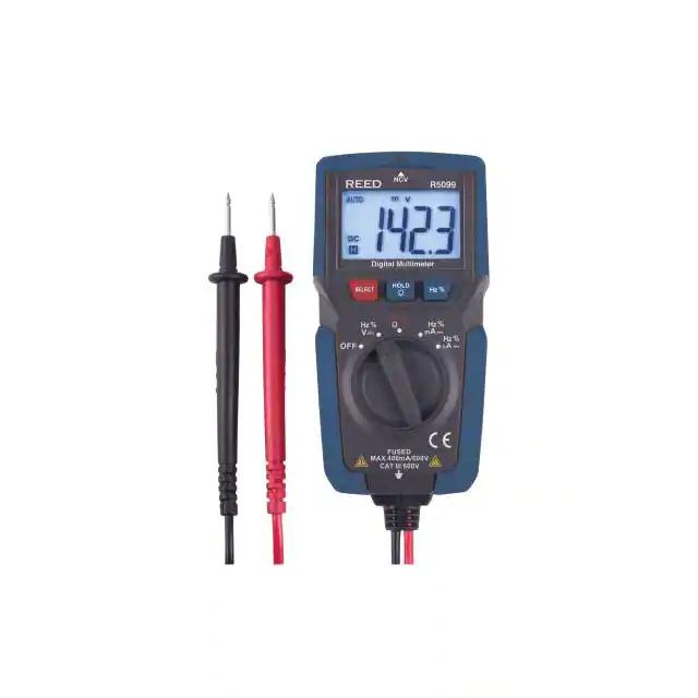 This is manufactured by REED Instruments. The manufacturer part number is R5099. It is rated with cat iii 600v. Additionally, the product is designed with handheld Style. It is assigned with possible HTSUS value of 9030.31.0000. The product is rohs compliant. It also offers extra functions, such ascontinuity, diode test. It comes in digital (dmm) configuration. Ranging Options - auto. It performs basic function of voltage, current, resistance, capacitance, temperature, frequency. In addition, it is vendor undefined. The product is also supplied with battery, test leads. The product offers average response and is easy to use. The product has a typical of 4000 display count. It is shipped in retail package package . Its typical moisture sensitivity level is not applicable. It features a remarkable lcd display. The splendid features of the product include auto off, hold. It is supplied with 4 display digits. The product is designated with the ear99 code number.