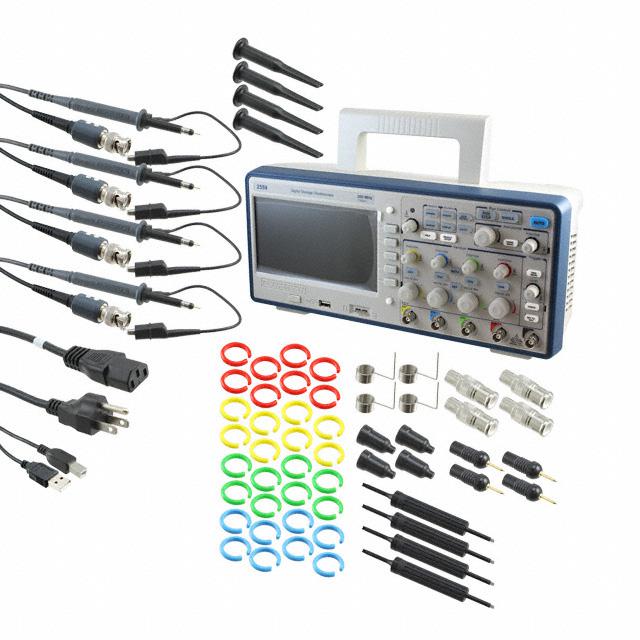 This is manufactured by B&K Precision. The manufacturer part number is 2559. The probe is basically a passive 10:1 (4) probe. It is assigned with possible HTSUS value of 9030.20.1000. The product is not applicable. In addition, it is reach unaffected. It holds a typical memory size of 48kpts. It comes in bench, digital configuration. It performs basic function of record, playback, save, trend. The product's sampling rate at per second is 2g. The product is also supplied with cord, manual, usb cable. Its maximum input voltage is cat i 400v. A bespoke product is ethernet, usb interface. It is shipped in bulk package . Its typical moisture sensitivity level is not applicable. Furthermore, its input impedance equals 1m - 13pf. It features a remarkable lcd - color display. The product 2550, is a highly preferred choice for users. It features 4 channels. Has 300 mhz bandwidth. It has optimum voltage supply of 100 ~ 240vac. It features a typical 1.2 ns rise time. The product is designated with the 3a992a code number.