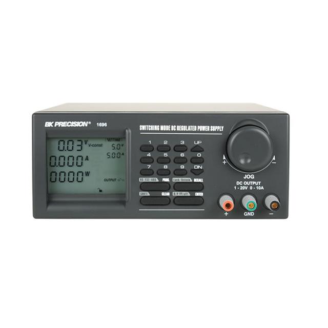 This is manufactured by B&K Precision. The manufacturer part number is 1696. It is assigned with possible HTSUS value of 8504.40.9530. The product is not applicable. Its typical moisture sensitivity level is not applicable. It comes in bench (ac to dc) configuration. In addition, it is reach unaffected. While, the output current includes 0 ~ 10a. The b&k precision's product offers user-desired applications. The voltmeter; Ammeter accuracy value includes 1.5% + 2 counts. The product's diameters include 8.460" l x 7.600" w x 3.850" h (214.88mm x 193.04mm x 97.79mm). Ripple - 25mv p-p. Consists of 4 characters. While the load voltage regulation of 0.5% + 200mv. It features a remarkable lcd display. The splendid features of the product include programmable, rs232 port, software, switching. The typical product's weight is 6.6 lbs (3 kg). Furthermore, the output voltage is 1 ~ 20vdc. In addition, box is the available packaging type of the product. The product allows 50mv of line voltage regulation. It has optimum voltage supply of 90 ~ 265vac. Additionally, the product is supplied with 1 outputs. The product is designated with the ear99 code number.