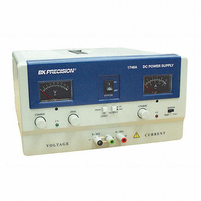 This is manufactured by B&K Precision. The manufacturer part number is 1746A. It is assigned with possible HTSUS value of 8504.40.9530. The product is not applicable. Its typical moisture sensitivity level is not applicable. It comes in bench (ac to dc) configuration. Current regulation - line of 0.4% + 5ma. In addition, it is reach unaffected. While, the output current includes 0 ~ 10a. The b&k precision's product offers user-desired applications. The voltmeter; Ammeter accuracy value includes 0.025. The product's diameters include 15.000" l x 10.500" w x 5.700" h (381.00mm x 266.70mm x 144.78mm). Ripple - 1mv rms. While load current regulation is 0.4% + 5ma. While the load voltage regulation of 0.04% + 2mv. It features a remarkable analog (2) display. The splendid features of the product include constant current and constant voltage indicators. The typical product's weight is 20 lbs (9.1 kg). The product 1746, is a highly preferred choice for users. Furthermore, the output voltage is 0 ~ 16vdc. In addition, bulk is the available packaging type of the product. The product allows 0.2% + 2mv of line voltage regulation. It has optimum voltage supply of 120vac. Additionally, the product is supplied with 1 outputs. The product is designated with the ear99 code number.