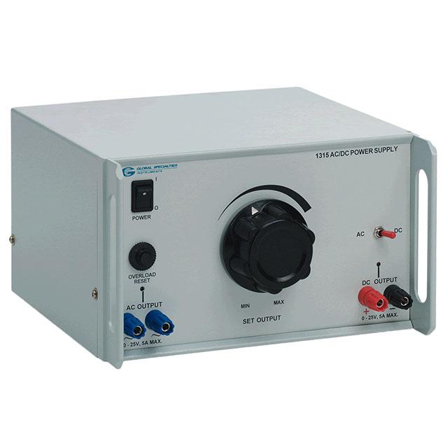 This is manufactured by Global Specialties. The manufacturer part number is 1315. It is assigned with possible HTSUS value of 8504.40.7001. The product is rohs compliant. Its typical moisture sensitivity level is not applicable. It comes in bench (ac to dc) configuration. While, the output current includes 5a, 5a. The global specialties's product offers user-desired applications. The product's diameters include 8.250" l x 9.000" w x 5.000" h (209.55mm x 228.60mm x 127.00mm). It features a remarkable no display display. The splendid features of the product include selectable output. The typical product's weight is 9 lbs (4.1 kg). Furthermore, the output voltage is 0 ~ 25vdc, 0 ~ 25vac. In addition, bulk is the available packaging type of the product. It has optimum voltage supply of 115vac. Additionally, the product is supplied with 2 outputs. The product is designated with the ear99 code number.