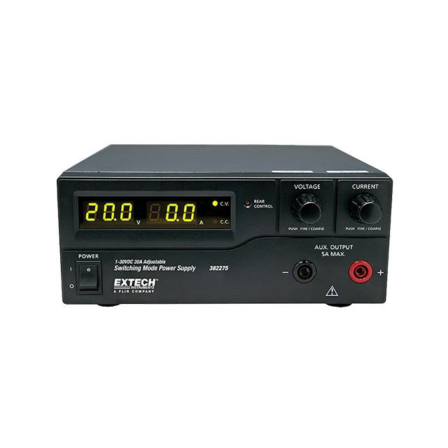 This is manufactured by FLIR Extech. The manufacturer part number is 382276. It is assigned with possible HTSUS value of 8504.40.9540. Additionally, the product is supplied with 1 outputs. The product features power and watts of 600w. Its typical moisture sensitivity level is not applicable. It comes in bench (ac to dc) configuration. Current regulation - line of 50ma. The product allows 20mv of line voltage regulation. While, the output current includes 1 ~ 20a. The voltmeter; Ammeter accuracy value includes 0.5% + 2 digits. It is shipped in box package . The product's diameters include 8.500" l x 7.900" w x 3.500" h (215.90mm x 200.66mm x 88.90mm). Ripple - 5mv rms. Consists of 3 (2) characters. While load current regulation is 100ma. It has a long 6 weeks standard lead time. While the load voltage regulation of 50mv. It features a remarkable led display. Furthermore, the output voltage is 1 ~ 30v. It has optimum voltage supply of 230vac. The product is designated with the ear99 code number.