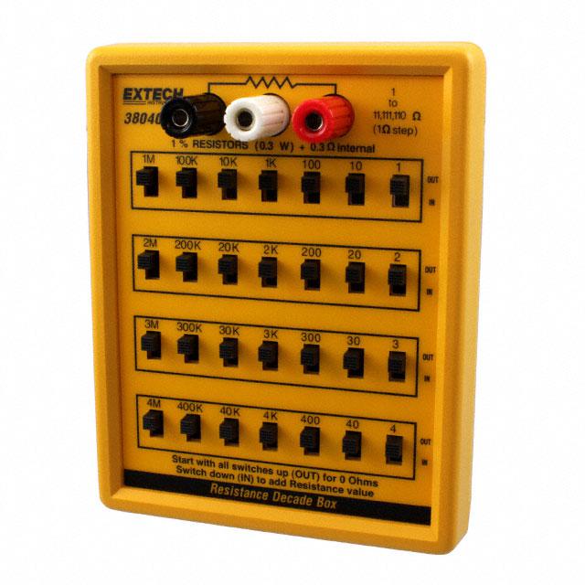 This is manufactured by FLIR Extech. The manufacturer part number is 380400. This is basically a useful and handy decade box, resistance. It is assigned with possible HTSUS value of 8537.10.9170. The typical product's weight is 0.688 lb (312.07 g). It is shipped in box package . Its typical moisture sensitivity level is not applicable. The product is suitable for use with field testing. It has a long 6 weeks standard lead time. The product is designated with the ear99 code number.