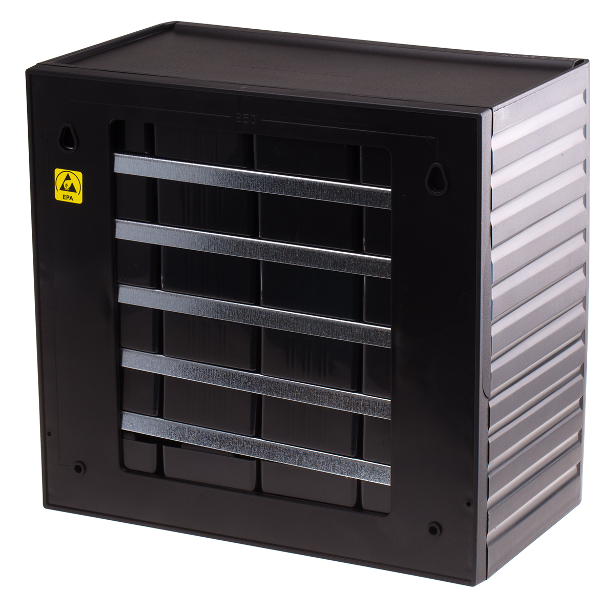 This is 24 Drawer ESD Cabinet 290 x 310 x 180mm manufactured by RS Pro. The manufacturer part number is 909-6978. It has drawer depth of 170mm . 69mm is the overall drawer width of the product . It has 24 drawers per cabinet . The product complies with EN 61340-5-1 standard yes . It has 1 compartments per insert . Moreover, the product has 170mm of drawer length . It comes in cabinet configuration. With a drawer of 40mm in height .