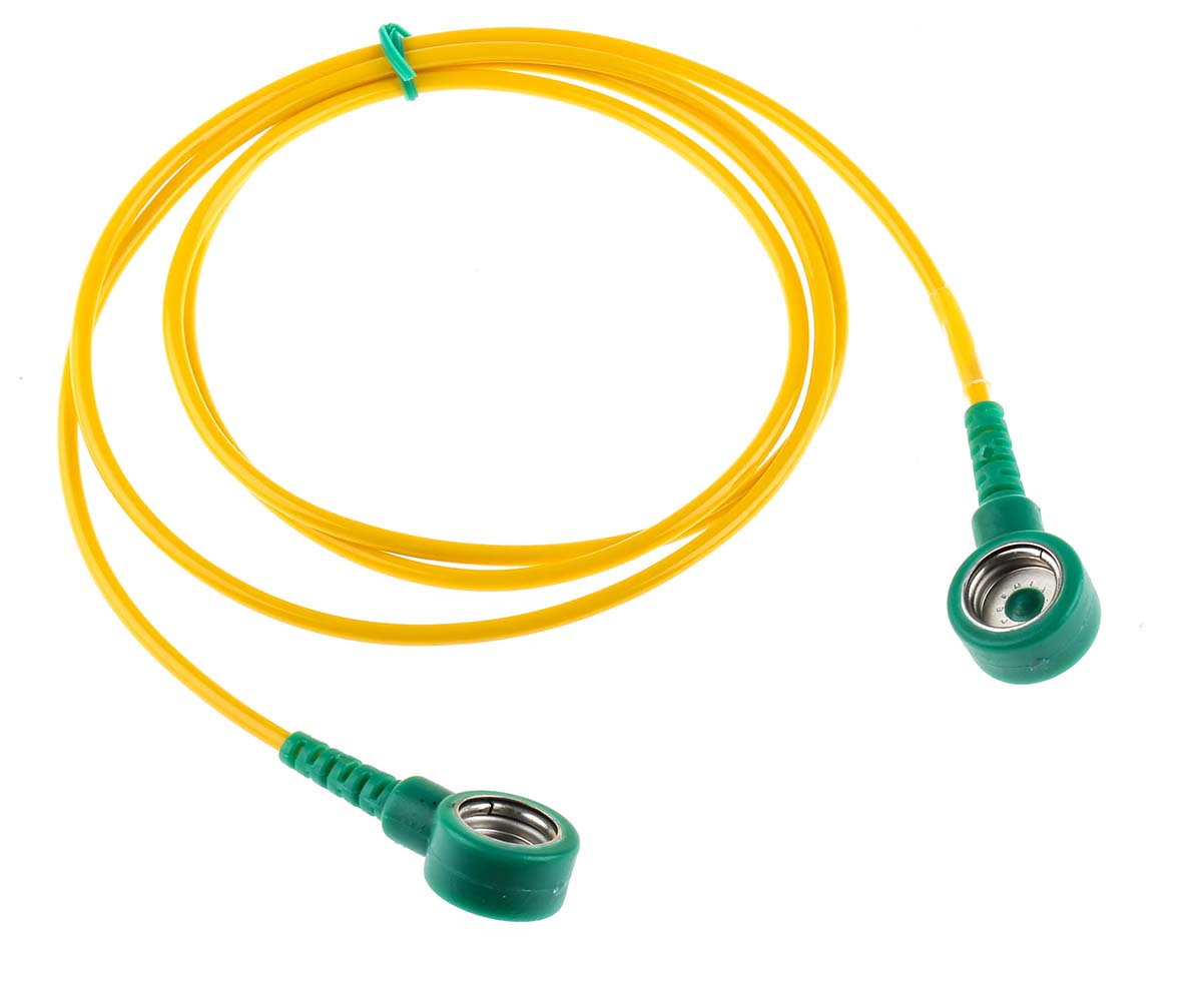 This is Connecting ESD Grounding Cord 10mm 1m Straight manufactured by RS Pro. The manufacturer part number is 129-4969. The product complies with EN 61340-5-1 standard yes . It is a type of grounding cord accessory. It carries 1mω resistance. 10 mm socket Connector type offer robust functionality. It has a standard 10mm size stud . The cord is 1m long. The product is designed with a press stud - press stud termination. Its cord style is straight .