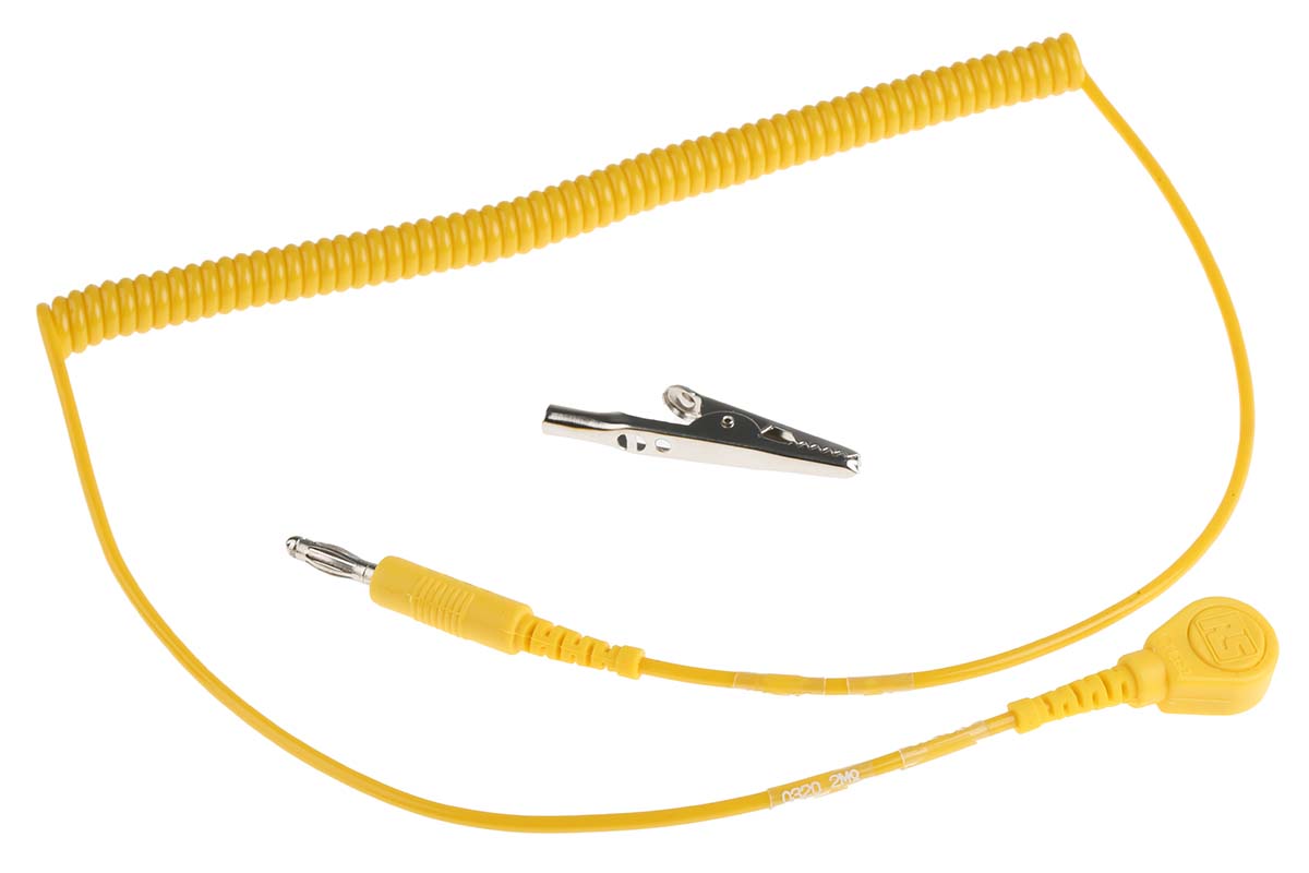 This is Connecting ESD Grounding Cord 10mm 1.8m Coiled manufactured by RS Pro. The manufacturer part number is 552-898. The product complies with EN 61340-5-1 standard yes . It is a type of grounding cord accessory. It carries 2mω resistance. 10 mm socket Connector type offer robust functionality. It has a standard 10mm size stud . The cord is 1.8m long. The product is designed with a press stud - banana plug/croc clip termination. Its cord style is coiled .