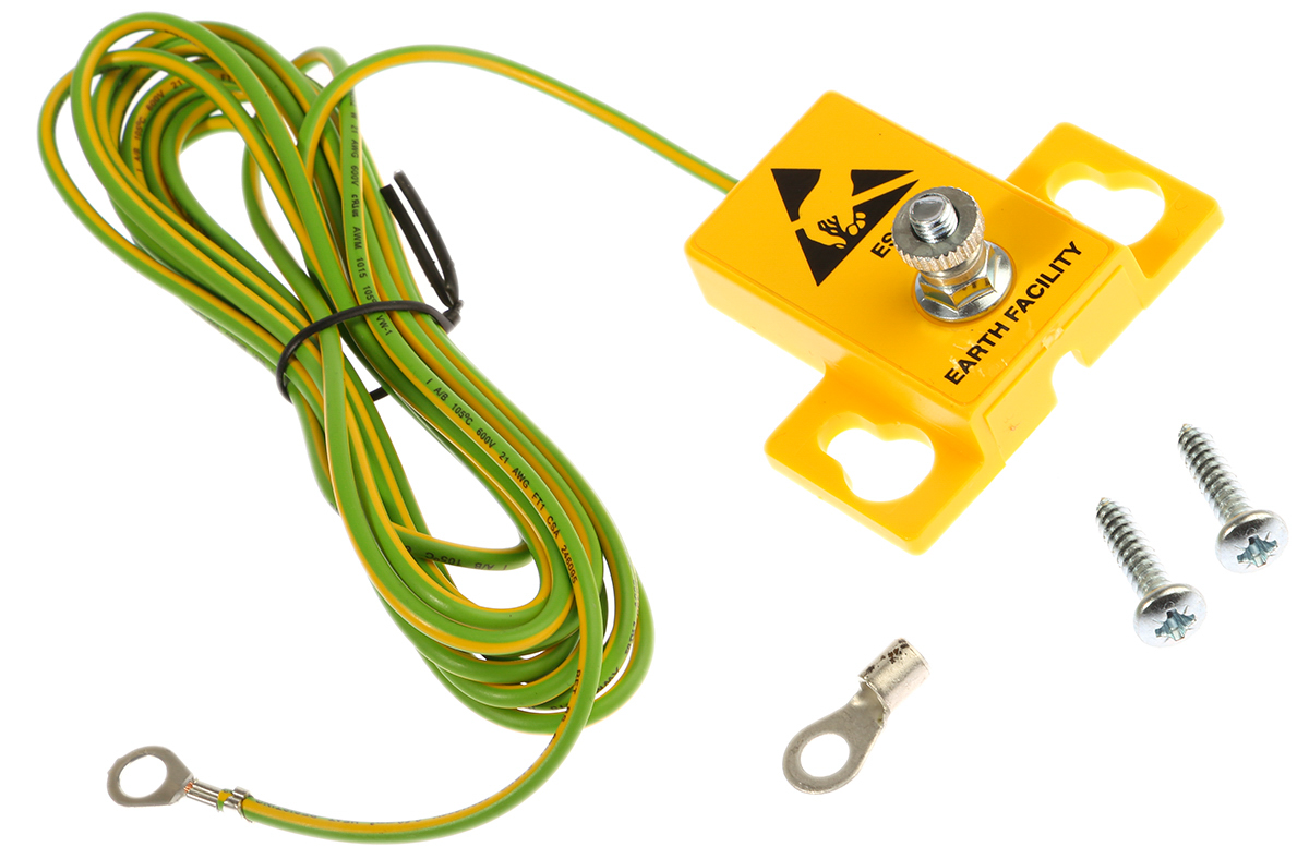This is ESD Earth Bonding Bracket with Grounding Post x 1 manufactured by RS Pro. The manufacturer part number is 298-3963. Additionally, it has a hook & loop type attachment . It is a type of earth bonding bracket accessory. grounding post x 1 Connector type offer robust functionality. The product complies with EN 61340-5-1 standard yes . The cord is 2m long. The product is designed with a ring terminal termination. Its cord style is straight . In addition, the product is reusable .