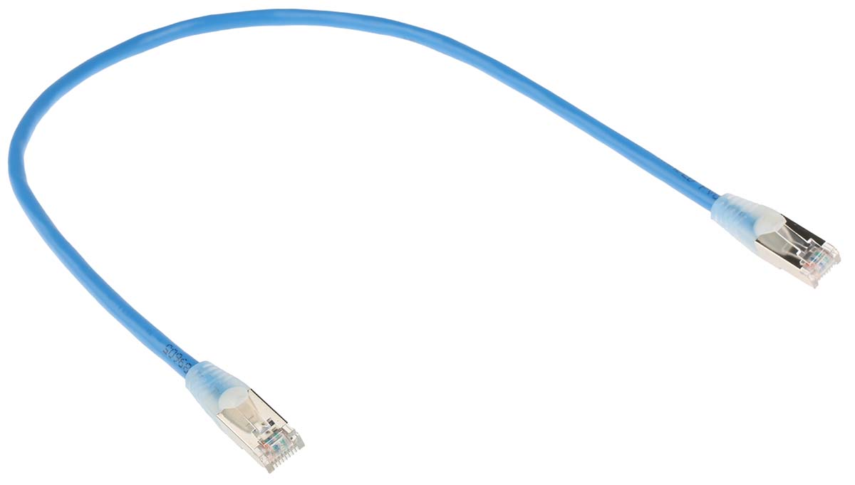 This is 500mm F/UTP PVC Cat5e Ethernet Cable Assembly Blue manufactured by RS Pro. The manufacturer part number is 556-285. This cat5e is popular among global users for its versatile and effective applications. Connector 2 is a male connector. The product complies with all safety standards, such as ansi/eia/tia 568b.2 2002, iso/iec 11801 2002, rohs compliant, ul. Moreover, this cable has a round shape. Termination Options -terminated. It has a/an straight through wiring configuration . The item is shielded with a f/utp. Moreover, the product has a nominal 30v voltage rating. This connector 1 is a male. The sheath has an adorable blue colour. Its accurate length is 0.5m. Features 26awg - American Wire Gauge. The product has 23.76mm² cross section area. Whereas the outer sheath is manufactured from pvc material. While the Connector 2 is rj45. Moreover, the product is shielded . Connector 1 is rj45. Its outer diameter is 5.5mm. There are 8 contacts on connector 1.