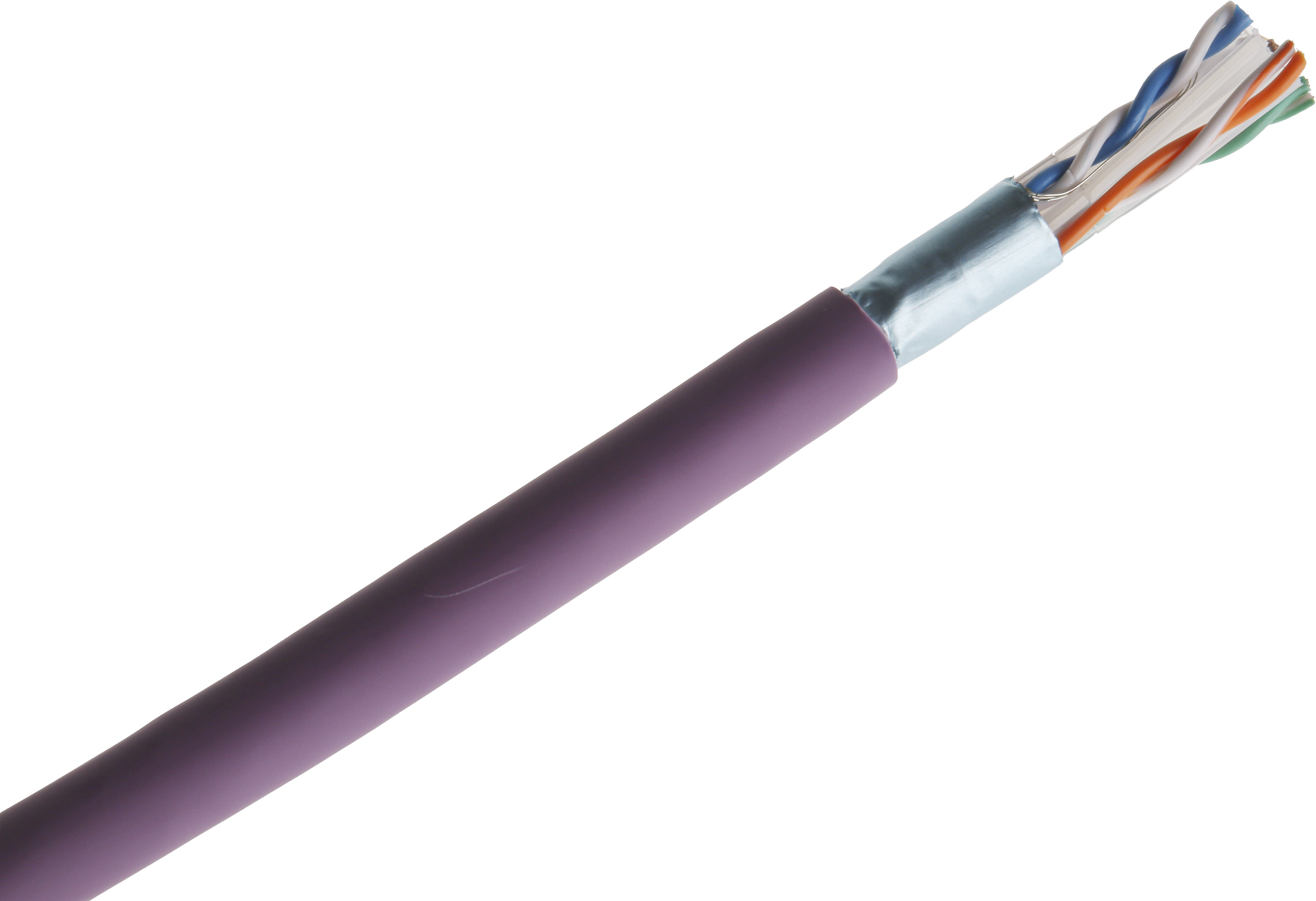 This is Purple Cat6 Ethernet Cable F/UTP LSZH Sheath Low Smoke Zero Halogen (LSZH) 0.13 mm² 305m manufactured by RS Pro. The manufacturer part number is 556-875. This cat6 is popular among global users for its versatile and effective applications. It has a connector type B of unterminated . The item is shielded with a f/utp. The product is offered with unterminated type A connector . low smoke zero halogen is the jacket material of the product . ethernet cable is a versatile product designed to provide user-defined applications. Furthermore, the cable has a 305m of length.