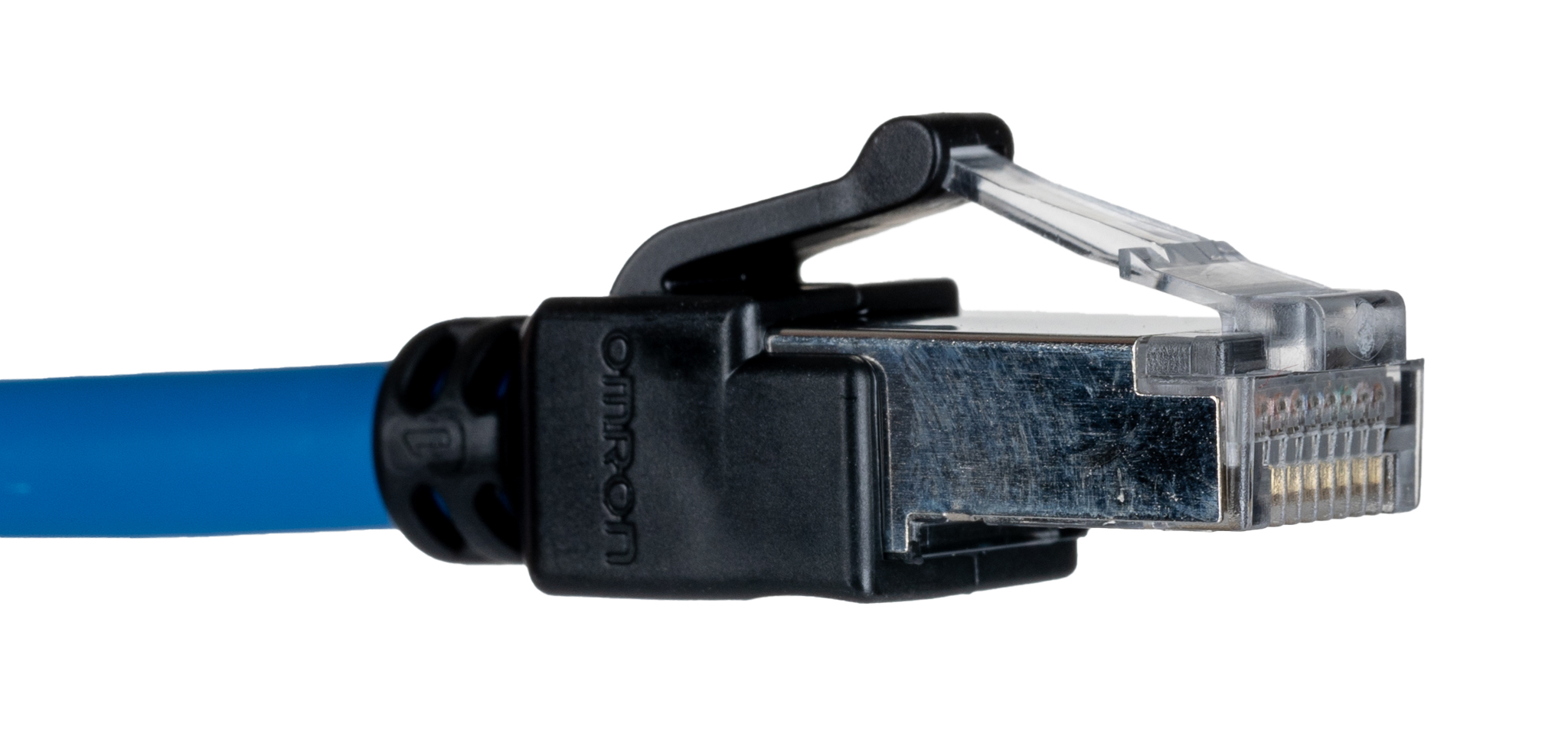 The Omron XS6W‑6LSZH8SS200CM‑B stands out thanks to its flame‑retardant LSZH sheath that emits no halogen corrosives, boosting safety in enclosed or public settings. Its Cat 6a specification supports up to 10 Gbps at 500 MHz, while S/FTP shielding (overall braid plus foil per pair) ensures excellent resistance to electromagnetic interference, perfect for electrical and automation environments.
