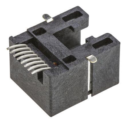 This is RJ45 85502 Series Number Cat3 8 Way Right Angle Surface Mount Unshielded RJ45 Connector Female manufactured by Molex. The manufacturer part number is 85502-5008. It comprises 8p8c ways. The product has a right angle orientation. The product is available in surface mount configuration. This product features 1 number of ports. In addition, male is the available "Gender" of the product. Its accurate length is 18.1mm. Furthermore, the product is 15.24mm wide. The product comes in 11.5mm depth. Furthermore, it has a/an rj45 connector type ethernet connector . The high-quality gold over palladium nickel is used as contact plating material. The product is made from sturdy copper alloy materials. It carries [Serial Number] serial number.