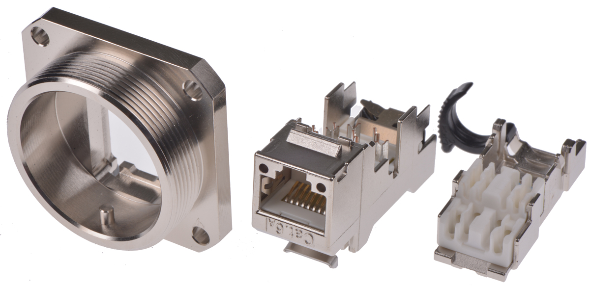 This is TOC Cat6a RJ45 Connector Socket Shielded Straight Panel Mount manufactured by Telegartner. The manufacturer part number is J60020A0000. The product is made from sturdy brass (shield contact), spring steel materials. It comprises 8p8c ways. The product has a straight orientation. The product is available in panel mount configuration. It is IP rated with ip68. The product toc, is a highly preferred choice for users. The item is shielded with a shielded. Its accurate length is 38mm. Furthermore, the product is 38mm wide. The product comes in 50.7mm depth. Furthermore, it has a/an rj45 connector type ethernet connector . The high-quality 0.8 μm silver on 1.2 μm nickel is used as contact plating material. In addition, female is the available "Gender" of the product. This cat6a is popular among global users for its versatile and effective applications. It carries [Serial Number] serial number.
