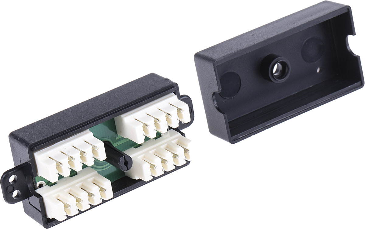 This is Cat5e Punch Down Wiring Box 2 Port UTP manufactured by RS Pro. The manufacturer part number is 340-9646. This product features 2 number of ports. It has a/an straight through wiring configuration . The item is shielded with a utp. Its accurate length is 25mm. Furthermore, the product is 25mm wide. The product comes in 45mm depth. It is a type of punch down interface. This cat5e is popular among global users for its versatile and effective applications. It comes in wiring box configuration.