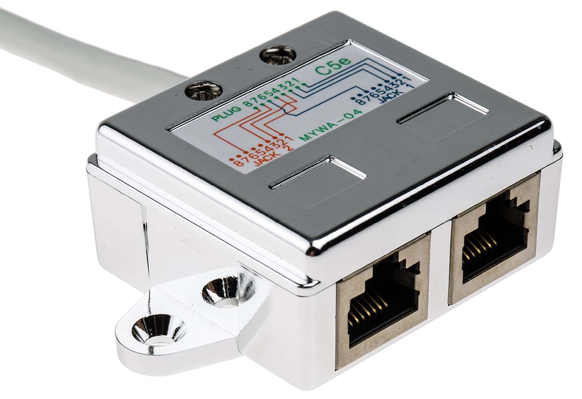 This is Cat5e RJ45 T-Adapter 2 Port Shielded 170 mm Extension Length manufactured by RS Pro. The manufacturer part number is 443-9519. It has a/an straight through wiring configuration . The item is shielded with a shielded. This product features 2 number of ports. It is a type of rj45 interface. This cat5e is popular among global users for its versatile and effective applications. It comes in t-adapter configuration. It has an extension length of 170 mm .