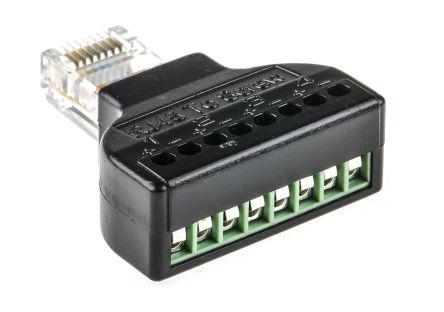 This is Clever Little Box RJ45 Terminal Block Adapter 8 Port manufactured by RS PRO. The manufacturer part number is CLB-JL45. It has a/an straight through wiring configuration . This product features 8 number of ports. It comes in adapter configuration. It is a type of rj45, terminal block interface.