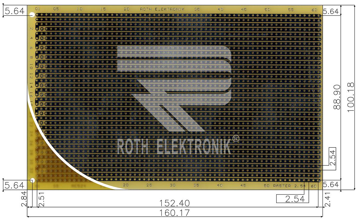 This is Single Sided DIN 41612 D Eurocard PCB FR4 with 36 x 61 1mm Holes 2.54 x 2.54mm Pitch 160 x 100 x 1.5mm manufactured by Roth Elektronik. The manufacturer part number is RE524-LF. It has a 36 x 61 layout hole . Its copper thickness is about 35µm . The given dimensions of the product include 160 x 100 x 1.5mm. It has a standard din 41612 d connection . Its hole pitch is about 2.54 x 2.54mm . It is 1.5mm thick. Furthermore, the product is 100mm wide. Its accurate length is 160mm. Moreover, its FR material is of fr4 grade . Has a hole diameter of 1mm. Its base is made up of epoxy glass fabric laminate material . Additionally, it is/has 1 sides .