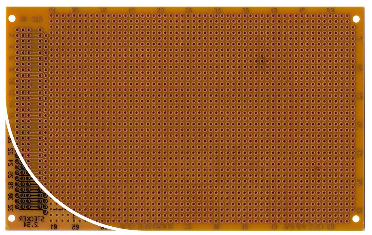This is Single Sided DIN 41612 C Eurocard PCB FR2 with 37 x 53 1mm Holes 2.54 x 2.54mm Pitch 160 x 100 x 1.5mm manufactured by Roth Elektronik. The manufacturer part number is RE320-HP. It has a 37 x 53 layout hole . Its copper thickness is about 35µm . The given dimensions of the product include 160 x 100 x 1.5mm. It has a standard din 41612 c connection . Its hole pitch is about 2.54 x 2.54mm . It is 1.5mm thick. Furthermore, the product is 100mm wide. Its accurate length is 160mm. Moreover, its FR material is of fr2 grade . Has a hole diameter of 1mm. Its base is made up of synthetic resin bonded paper material . Additionally, it is/has 1 sides .