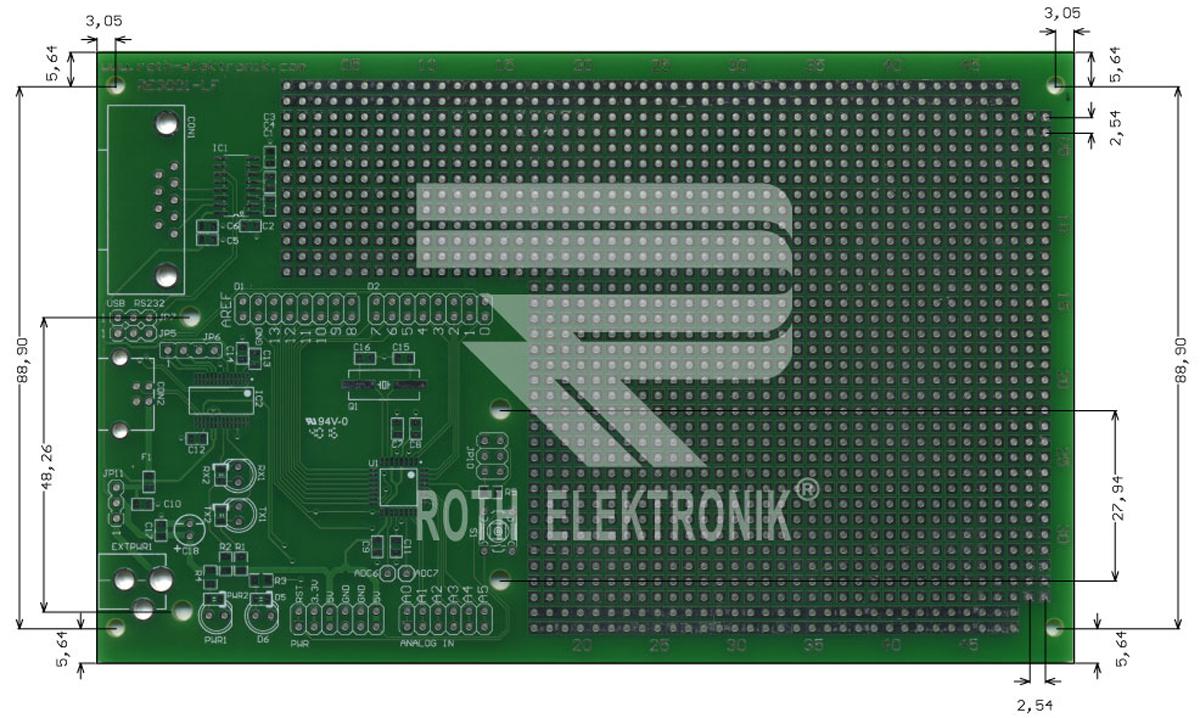 This is Double Sided Eurocard FR4 With 1.1mm Holes 2.54 x 2.54mm Pitch 160 x 100.18 x 1.5mm manufactured by Roth Elektronik. The manufacturer part number is RE3001-LF. Moreover, its FR material is of fr4 grade . Its copper thickness is about 35µm . The given dimensions of the product include 160 x 100 x 1.5mm. Its hole pitch is about 2.54 x 2.54mm . Its base is made up of epoxy glass fabric laminate material . Furthermore, the product is 100mm wide. Its accurate length is 160mm. The circuit has two side pattern. Has a hole diameter of 1.1mm. It is 1.5mm thick. Additionally, it is/has 2 sides .