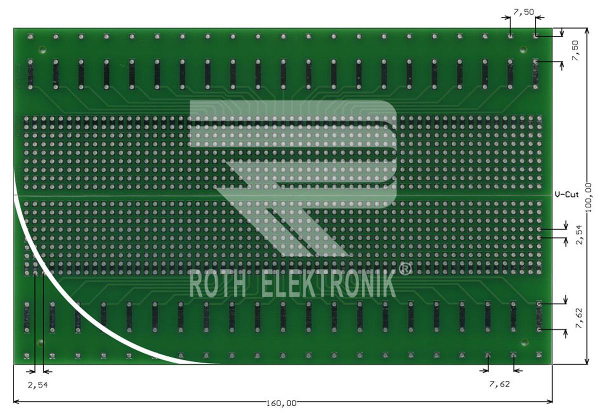 This is Eurocard manufactured by Roth Elektronik. The manufacturer part number is RE660-LF. It has a 7 x 37 layout hole . Its copper thickness is about 35µm . The given dimensions of the product include 160 x 100 x 1.5mm. Its hole pitch is about 2.54 x 2.54 mm, 7.5 x 7.5 mm, 7.62 x 7.62mm . It is 1.5mm thick. Furthermore, the product is 100mm wide. Its accurate length is 160mm. Moreover, its FR material is of fr4 grade . The circuit has two side pattern. Has a hole diameter of 1.1mm. Its base is made up of epoxy glass fabric laminate material . Additionally, it is/has 2 sides .