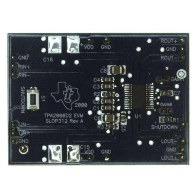This is manufactured by Texas Instruments. The manufacturer part number is TPA2000D2EVM. It is assigned with possible HTSUS value of 8473.30.1180. The product is not applicable. It has a maximum output power into channels at given loads, such as 2w x 2 @ 3ohm. In addition, it is reach unaffected. Furthermore, it has a2-channel (stereo) output. The texas instruments's product offers user-desired applications. It is a fully populated type. Its typical moisture sensitivity level is 1 (unlimited). It has a long 18 weeks standard lead time. Additionally, [Utilised IC / Part] is the used part of the product. In addition, bulk is the available packaging type of the product. It has optimum voltage supply of 4.5v ~ 5.5v. The product is also supplied with contents, such as board(s). It is a sort of a class d amplifier. Moreover, it corresponds to tpa2000, a base product number of the product. The product is designated with the ear99 code number.
