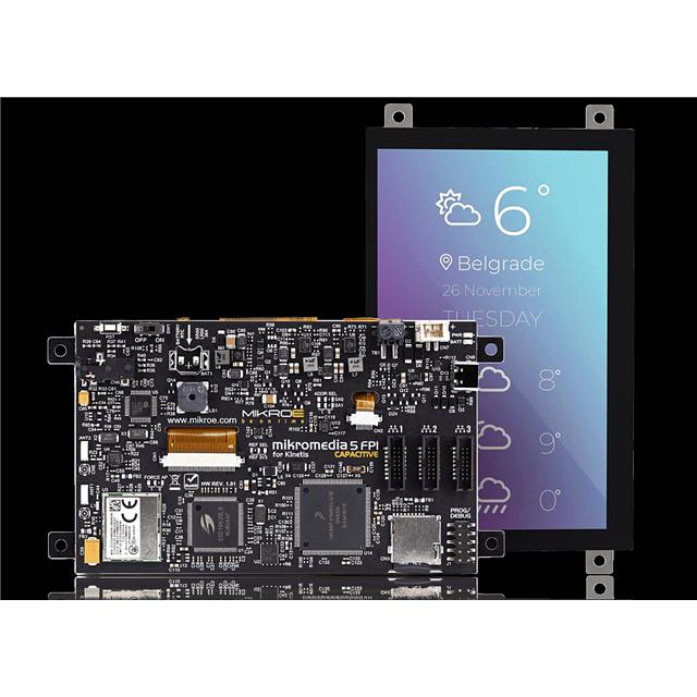 This is manufactured by MikroElektronika. The manufacturer part number is MIKROE-3919. It is assigned with possible HTSUS value of 8471.50.0150. The product is rohs3 compliant. Platform Info: mikromedia 5 for kinetis capacitive fpi with frame. It comes in mcu 32-bit configuration. In addition, it is reach unaffected. It is a evaluation platform type. It is shipped in bulk package . Features mikrobus shuttle click interconnect system. Its typical moisture sensitivity level is 1 (unlimited). Additionally, [Utilised IC / Part] is the used part of the product. The product is available in fixed configuration. The product kinetis, is a highly preferred choice for users. Moreover, it corresponds to mikroe, a base product number of the product. arm® cortex®-m4 is the product's core processor. Contents Include: board(s), lcd. The product is designated with the 5a992c sc code number.