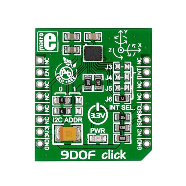 This is manufactured by MikroElektronika. The manufacturer part number is MIKROE-1996. The sensor utilises inertial measurement unit (imu) - 9 dof, a standard technology in sensor markets. Featured Device lsm9ds1. The kit is classified as mikrobus click board. This kit is known as 9dof click, consists of highly versatile and user-desired tools. It is assigned with possible HTSUS value of 8473.30.1180. The product is rohs3 compliant. Platform Info: mikrobus™ click™. It comes in sensor configuration. It performs basic function of accelerometer, gyroscope, magnetometer. In addition, it is reach unaffected. The mikroelektronika's product offers user-desired applications. Its typical moisture sensitivity level is 1 (unlimited). It has a long 2 weeks standard lead time. Additionally, [Utilised IC / Part] is the used part of the product. In addition, bulk is the available packaging type of the product. Contents Include: board(s). The product is designated with the ear99 code number.