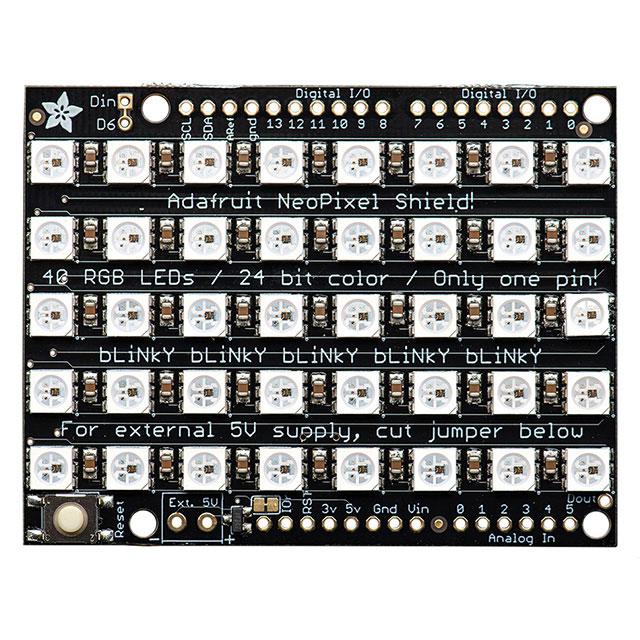 This is manufactured by Adafruit Industries LLC. The manufacturer part number is 1430. It performs basic function of led matrix 8x5. Additionally, [Utilised IC / Part] is the used part of the product. It is assigned with possible HTSUS value of 8541.41.0000. The product is rohs3 compliant. In addition, it is vendor undefined. Its typical moisture sensitivity level is 1 (unlimited). In addition, bulk is the available packaging type of the product. Platform Info: arduino. Moreover, it corresponds to neopixel, a base product number of the product. It has a long 6 weeks standard lead time. The adafruit industries llc's product offers user-desired applications. It comes in opto configuration. Contents Include: board(s), header(s). The product is designated with the ear99 code number.