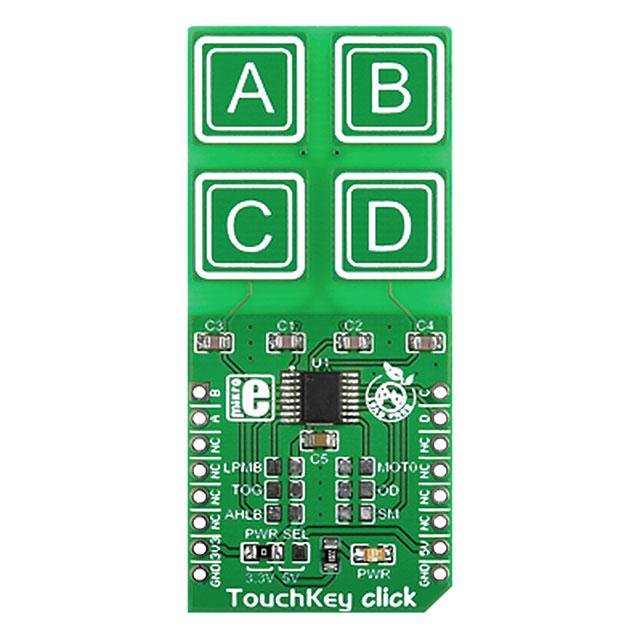 This is manufactured by MikroElektronika. The manufacturer part number is MIKROE-1906. This kit is known as touchkey, consists of highly versatile and user-desired tools. Featured Device ttp224. It has a capacitive touch user interface . The kit is classified as mikrobus click board. It is assigned with possible HTSUS value of 8473.30.1180. The product is rohs3 compliant. Platform Info: mikrobus™ click™. It comes in sensor configuration. It performs basic function of touch. In addition, it is reach unaffected. The mikroelektronika's product offers user-desired applications. Its typical moisture sensitivity level is 1 (unlimited). It has a long 2 weeks standard lead time. Additionally, [Utilised IC / Part] is the used part of the product. In addition, bulk is the available packaging type of the product. Contents Include: board(s). The product is designated with the ear99 code number.