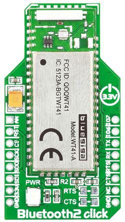 This is Bluetooth2 Click Shield manufactured by MikroElektronika. The manufacturer part number is MIKROE-1389. The processor part number is mikroe-1389 . This product use bluetooth technology. It is classified as a/an communication board . It performs basic function of bluetooth. Additionally, [Utilised IC / Part] is the used part of the product. It is assigned with possible HTSUS value of 8473.30.2000. It is shipped in bulk package . In addition, it is reach unaffected. Its typical moisture sensitivity level is 1 (unlimited). Platform Info: mikrobus™ click™. It comes in rf configuration. Contents Include: board(s). The product is designated with the 5a002a1 code number.