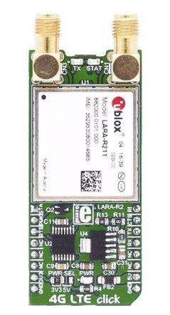 This is 4G LTE-E click (for EU) - LARA-R211 manufactured by MikroElektronika. The manufacturer part number is MIKROE-2527. It performs basic function of cellular. Additionally, [Utilised IC / Part] is the used part of the product. It is assigned with possible HTSUS value of 8471.50.0150. It is shipped in bulk package . The product is rohs3 compliant. Its typical moisture sensitivity level is 1 (unlimited). Platform Info: mikrobus™ click™. Contents Include: board(s). It comes in rf configuration. The product is designated with the 5a002a1 code number.