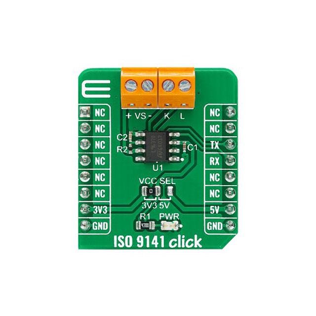 This is manufactured by MikroElektronika. The manufacturer part number is MIKROE-4331. The product is highly suitable for powertrain for ice. Featured Device l9637. The kit is classified as development kit. This kit is known as iso 9141 click, consists of highly versatile and user-desired tools. It is assigned with possible HTSUS value of 8473.30.1180. The product is rohs3 compliant. Platform Info: mikrobus™ click™. It comes in sensor configuration. It performs basic function of temperature. In addition, it is reach unaffected. It is shipped in bulk package . Its typical moisture sensitivity level is 1 (unlimited). Features mikrobus click interconnect system. Additionally, [Utilised IC / Part] is the used part of the product. Contents Include: board(s). The product is designated with the ear99 code number.