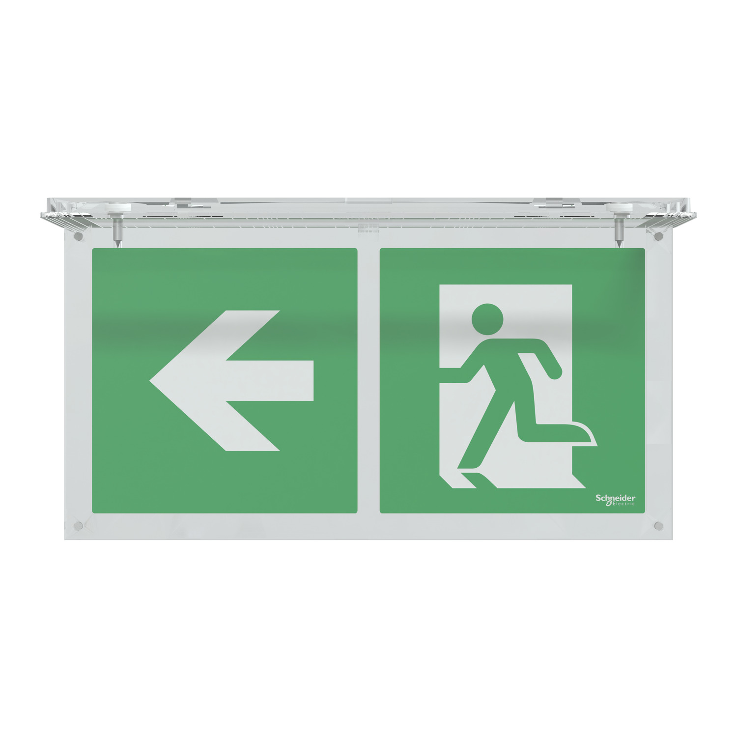 This is Emergency Exit Right Exit Sign manufactured by Schneider Electric. The manufacturer part number is OVA59822. It has a sign . It has a decent green colour. Additionally, it is self-adhesive no . Furthermore, the product is 130mm wide. It includes a symbol . In addition, it displays emergency exit right sign description .