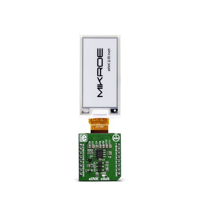 This is manufactured by MikroElektronika. The manufacturer part number is MIKROE-3810. It is assigned with possible HTSUS value of 8524.19.0000. The product is rohs3 compliant. Platform Info: mikrobus™ click™. It comes in display configuration. It performs basic function of eink electronic epaper 2.13". In addition, it is reach unaffected. The mikroelektronika's product offers user-desired applications. Its typical moisture sensitivity level is 1 (unlimited). It has a long 2 weeks standard lead time. In addition, bulk is the available packaging type of the product. Contents Include: board(s). The product is designated with the ear99 code number.