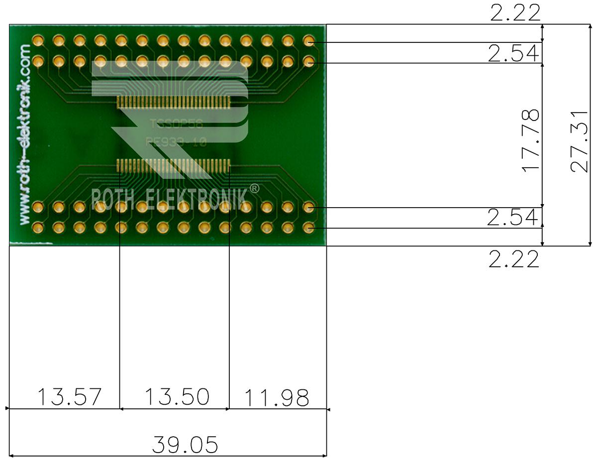 This is Surface Mount (SMT) Board TSSOP Epoxy Glass Double-Sided 39.5 x 27 x 1.5mm FR4 manufactured by Roth Elektronik. The manufacturer part number is RE933-10. Moreover, its FR material is of fr4 grade . Its copper thickness is about 35µm . The given dimensions of the product include 39.05 x 27.31 x 1.5mm. In addition, it has a/an tssop type SMD component . It is 1.5mm thick. Furthermore, the product is 27.31mm wide. Its accurate length is 39.05mm. Its base is made up of epoxy glass fabric laminate material . It comes in multi adapter board configuration. Additionally, it is/has 2 sides .