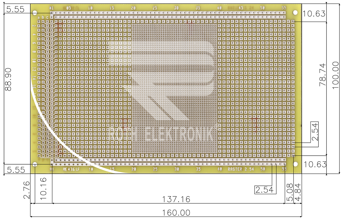 This is Surface Mount (SMT) Board Multi-Adaptor Epoxy Glass Double-Sided 160 x 100 x 0.7mm FR4 manufactured by Roth Elektronik. The manufacturer part number is RE436-LF. Moreover, its FR material is of fr4 grade . Its copper thickness is about 35µm . The given dimensions of the product include 160 x 100 x 0.7mm. In addition, it has a/an multiple types type SMD component . Its base is made up of epoxy glass fabric laminate material . Furthermore, the product is 100mm wide. Its accurate length is 160mm. It is 0.7mm thick. It comes in pcb prototype board configuration. Additionally, it is/has 2 sides .