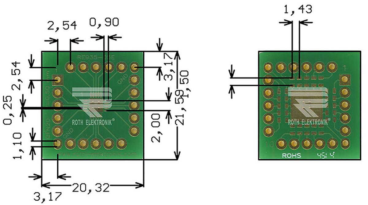 This is Double Sided Extender Board Adapter Multiadapter With Adaption Circuit Board 21.59 x 20.32 x 1.5mm manufactured by Roth Elektronik. The manufacturer part number is RE935-05E. Its copper thickness is about 35µm . The given dimensions of the product include 21.59 x 20.32 x 1.5mm. Its base is made up of epoxy fibre-glass material . Furthermore, the product is 20.32mm wide. Its accurate length is 21.59mm. It is 1.5mm thick. It comes in multiadapter with adaption circuit board configuration. Additionally, it is/has 2 sides .