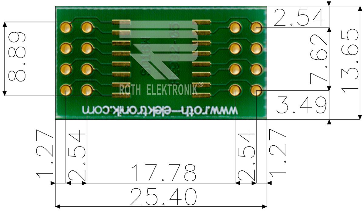 This is Surface Mount (SMT) Board SOIC Epoxy Glass Double-Sided 22.5 x 13.5 x 1.5mm FR4 manufactured by Roth Elektronik. The manufacturer part number is RE932-05. Moreover, its FR material is of fr4 grade . Its copper thickness is about 35µm . The given dimensions of the product include 25 x 13.5 x 1.5mm. In addition, it has a/an soic type SMD component . It is 1.5mm thick. Furthermore, the product is 13.5mm wide. Its accurate length is 25mm. Its base is made up of epoxy glass fabric laminate material . It comes in multi adapter board configuration. Additionally, it is/has 2 sides .