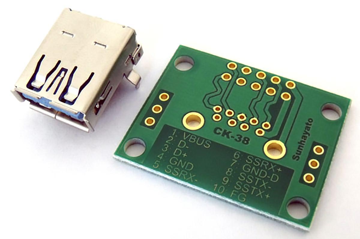 This is USB 3.0 Type-A female conversion board manufactured by Sunhayato. The manufacturer part number is CK-38. Moreover, its FR material is of cem3 grade . The given dimensions of the product include 30.48 x 24.13 x 1.6mm. It is 1.6mm thick. Furthermore, the product is 24.13mm wide. Its accurate length is 30.48mm. Its base is made up of glass composite material . It comes in conversion board configuration. Additionally, it is/has 2 sides .