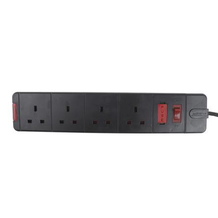 This is Type G - British 4 Gang Extension Leads 2m Cable 13A Fused manufactured by RS Pro. The manufacturer part number is 696-3635. The type g - british socket offers profound benefits and is well-designed. It has a decent black colour. Moreover, it is switchable yes . It includes 4 dedicated sockets .