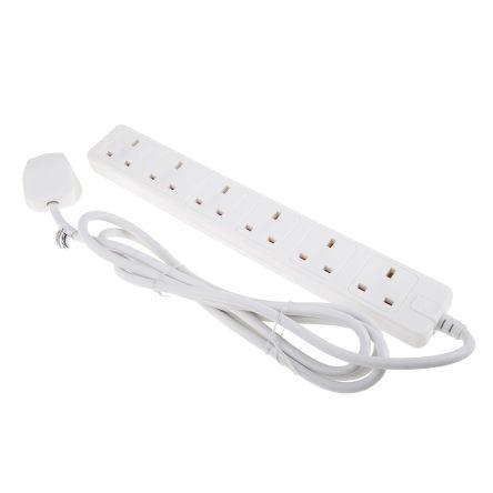 This is Type G - British 6 Gang Extension Leads 2m Cable 13A 250 V manufactured by RS Pro. The manufacturer part number is 849-6153. It has a surge protection feature no . Moreover, the product has a nominal 250 v voltage rating. Its main plug is of type g - british bs1363 type . The type g - british socket offers profound benefits and is well-designed. Furthermore, the cable has a 2m of length. It is RCD protected no . The product has 1.25 mm² cross section area. Moreover, it is switchable no . It includes 6 dedicated sockets . It comes in socket strip configuration. It has a decent white colour.