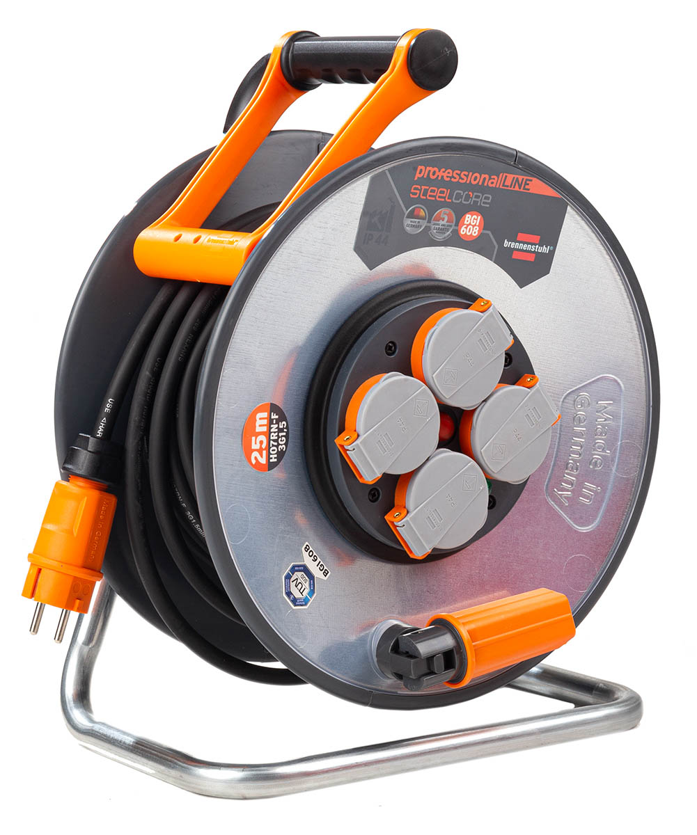 The Brennenstuhl 9191250100, 25m Extension Reel, 4 Socket IP44 in Black is a robust and reliable solution for extending power sources conveniently and safely. Crafted with precision engineering, it ensures durability and performance in various environments, making it an essential tool for both personal and professional use. This extension reel provides users with the flexibility to power multiple devices over a considerable distance, offering peace of mind with its IP44 rating, which protects against splashes and foreign object ingress, ideal for outdoor or demanding indoor settings.