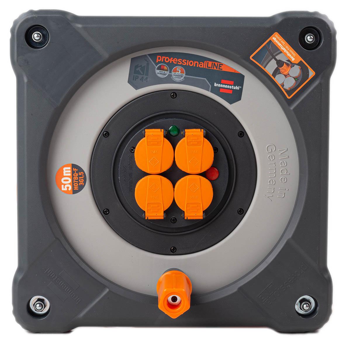 This is Cable Reel BQ IP44 50m H07BQ-F 3G15 NF manufactured by brennenstuhl. The manufacturer part number is 9201504200. Additionally, the product exhibits 16a unwound current rating . It has a surge protection feature no . The sheath is constructed from durable and adorable polyurethane material. It is IP rated with ip44. The product professional line, is a highly preferred choice for users. It has a decent grey colour. It has h07bq-f European harmonized code . Furthermore, the cable has a 50m of length. The sheath has an adorable orange colour. It is RCD protected no . The product has 1.5 mm² cross section area. Moreover, it is switchable no . Its main plug is of cee 7/7 german schuko / french type . The product consists of 3 cores. It includes 4 dedicated sockets . cable reel is a versatile product designed to provide user-defined applications. The nf socket offers profound benefits and is well-designed.