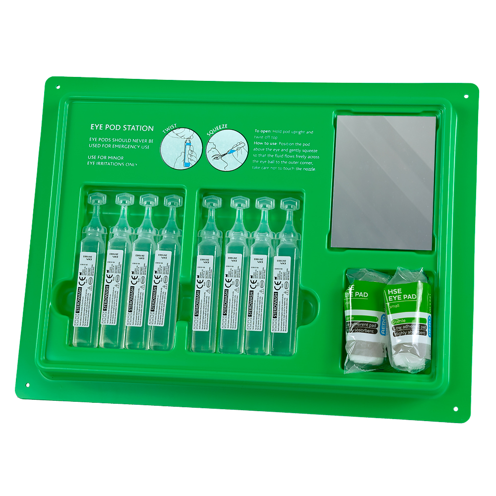 This is Wall Mounted Eyewash Station 20 ml manufactured by RS PRO. The manufacturer part number is 279-0870. It has an eyewash quantity about 8 . It has a wall mounted type mount . It comes in eyewash pod station configuration. This versatile kit contents include aeroguide™ a6 eyewash leaflet x 1, aerowash™ 20ml 0.9% sterile saline solution x 8, aerowound™ hse eye pads x 2 components. The product is available in 20 ml size.