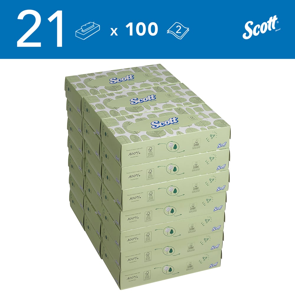 This is White Facial Tissues Box of 100 manufactured by SCOTT. The manufacturer part number is 8837. Better World Verification Options - eu ecolabel, fsc certified. Is it a better world product? yes. It contains 100 wipes per pack . It has 2 ply . It features scott range. The package is a sort of box. It has a decent white colour.