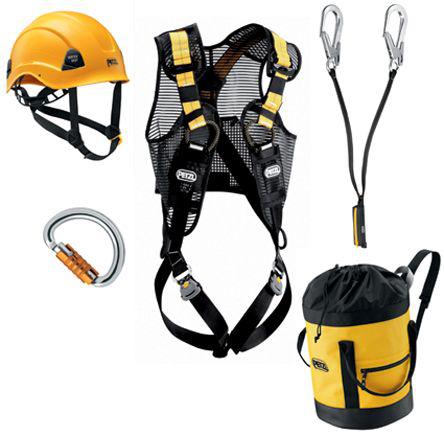 This is Fall Arrest Kit manufactured by Petzl. The manufacturer part number is LPWAH 2. It has a front harness attachment point . The fall arrest kit is designed to provide robust applications in a variety of specific settings. This versatile kit contents include alveo best yellow, bucket bag, double absorbicaymgo, newton fast jak, omni traict components.