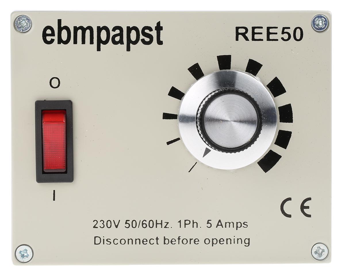 This is Fan Speed Controller Variable 230 V 5A manufactured by ebm-papst. The manufacturer part number is REE 50. With variable speed setting . Features 230 v ac supply voltage. It also carries 5a maximum current.